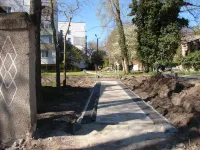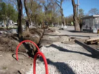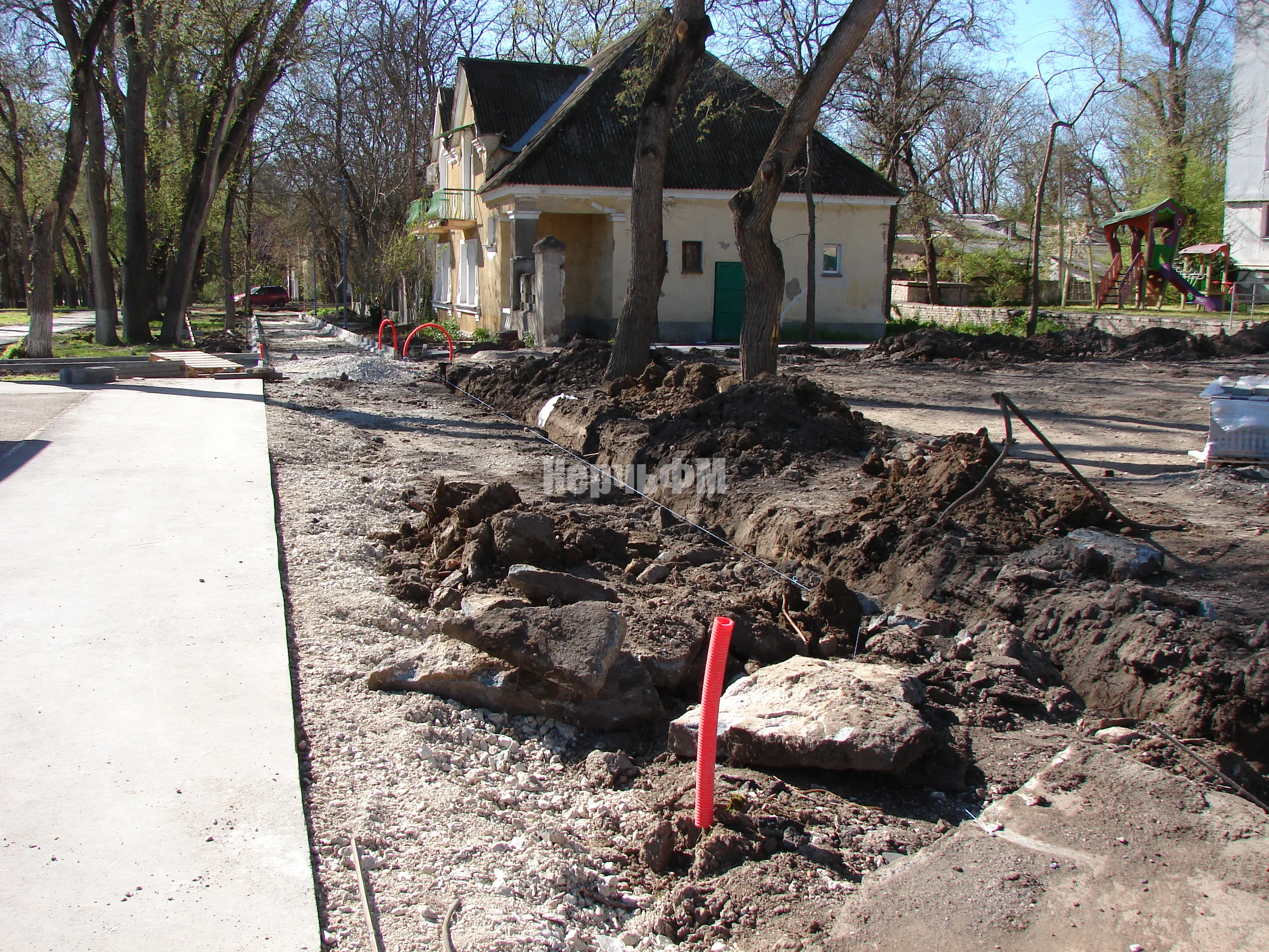 Теперь будут установлены лавочки и светильники, ведется прокладка электрокабеля.