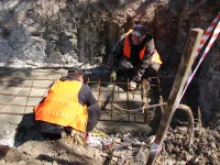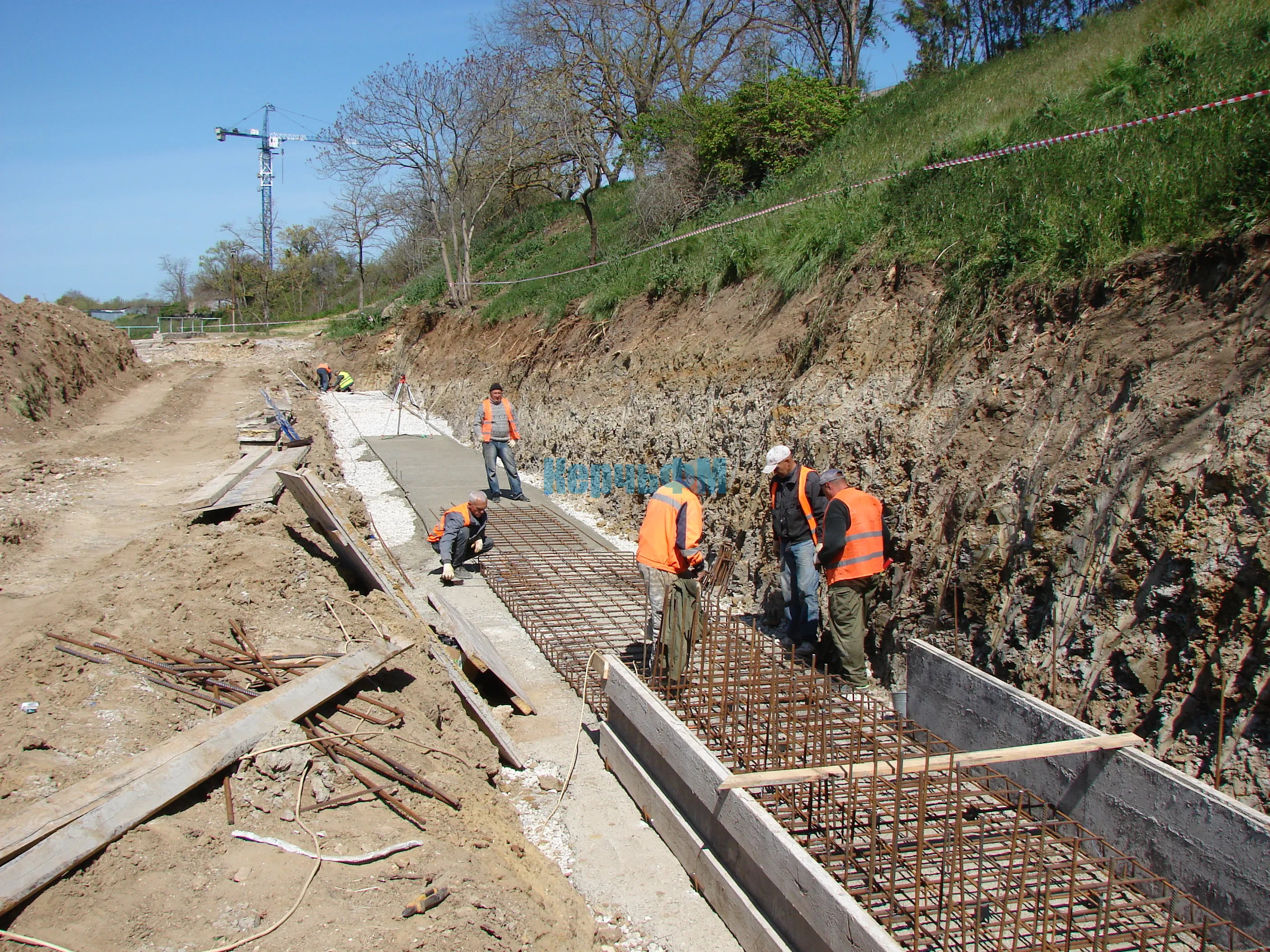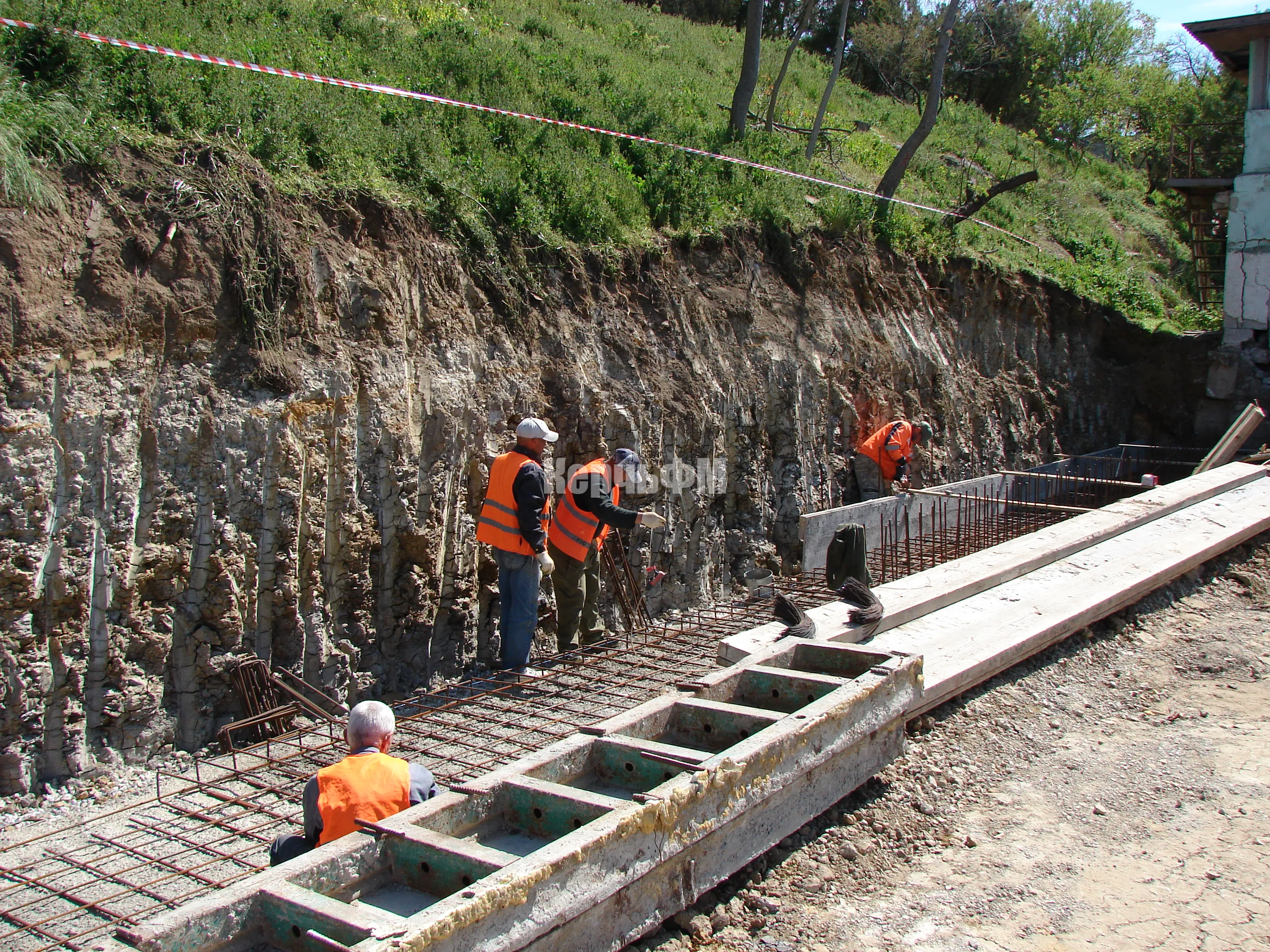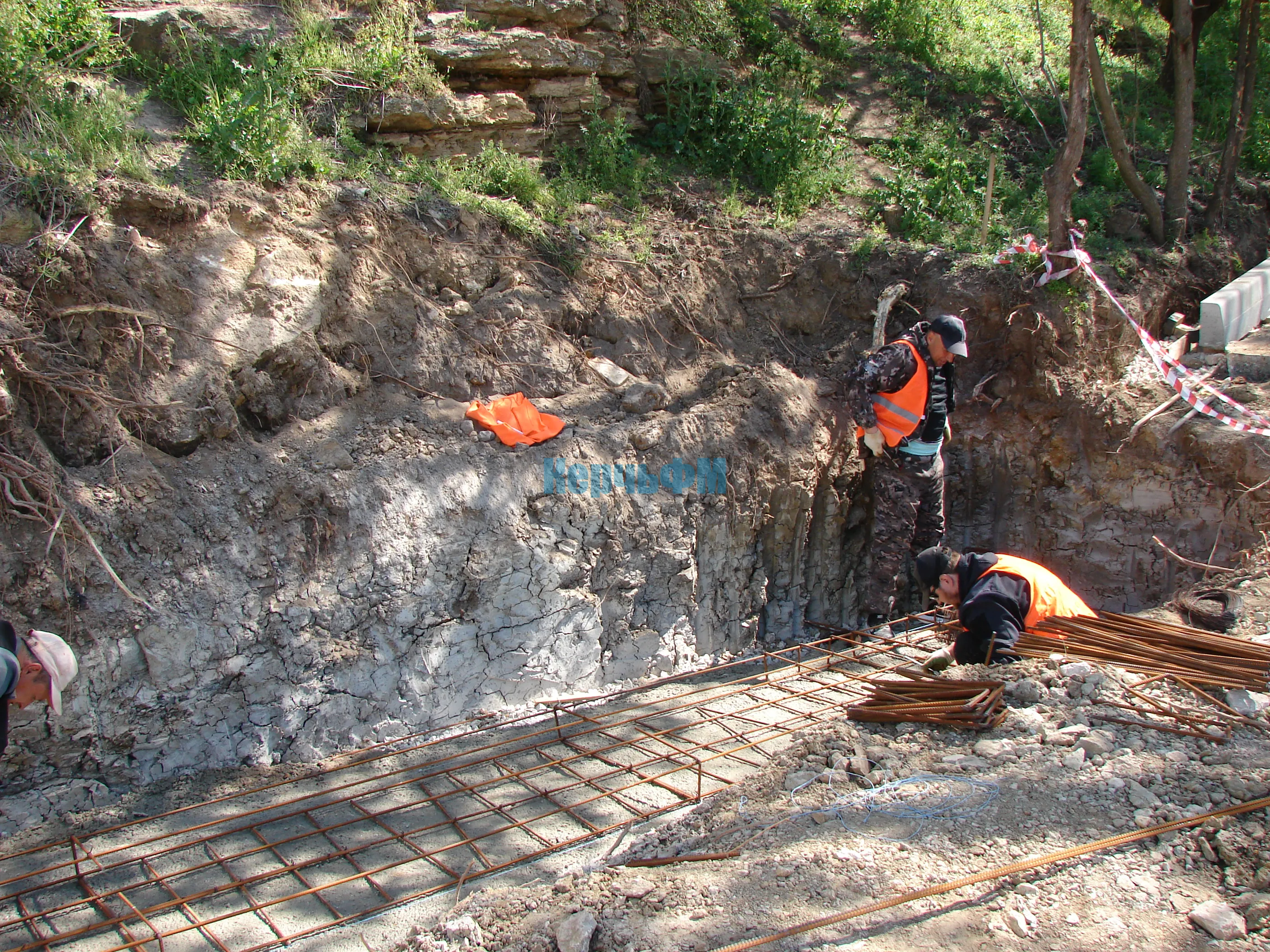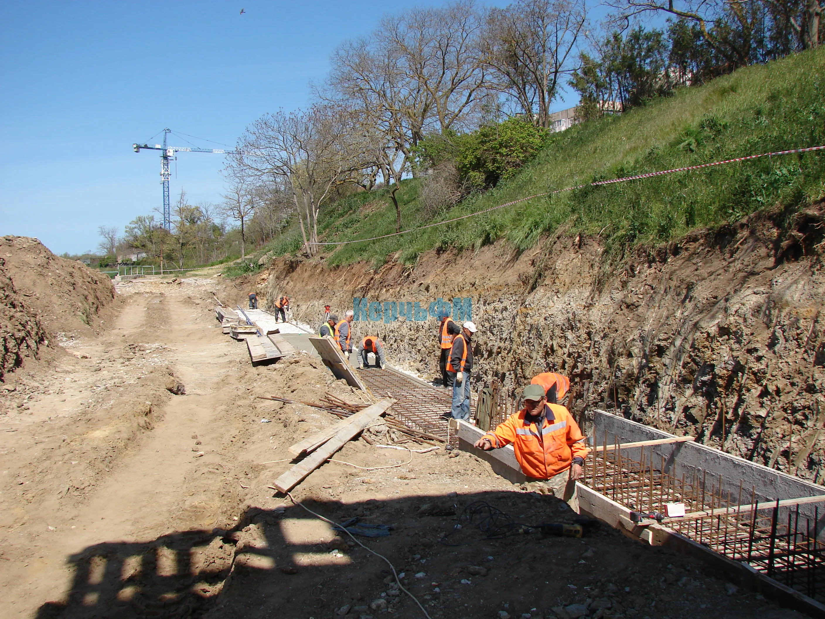 Строители в Керчи готовят каркас для подпорной стены на зоне отдыха Сморжевского
