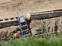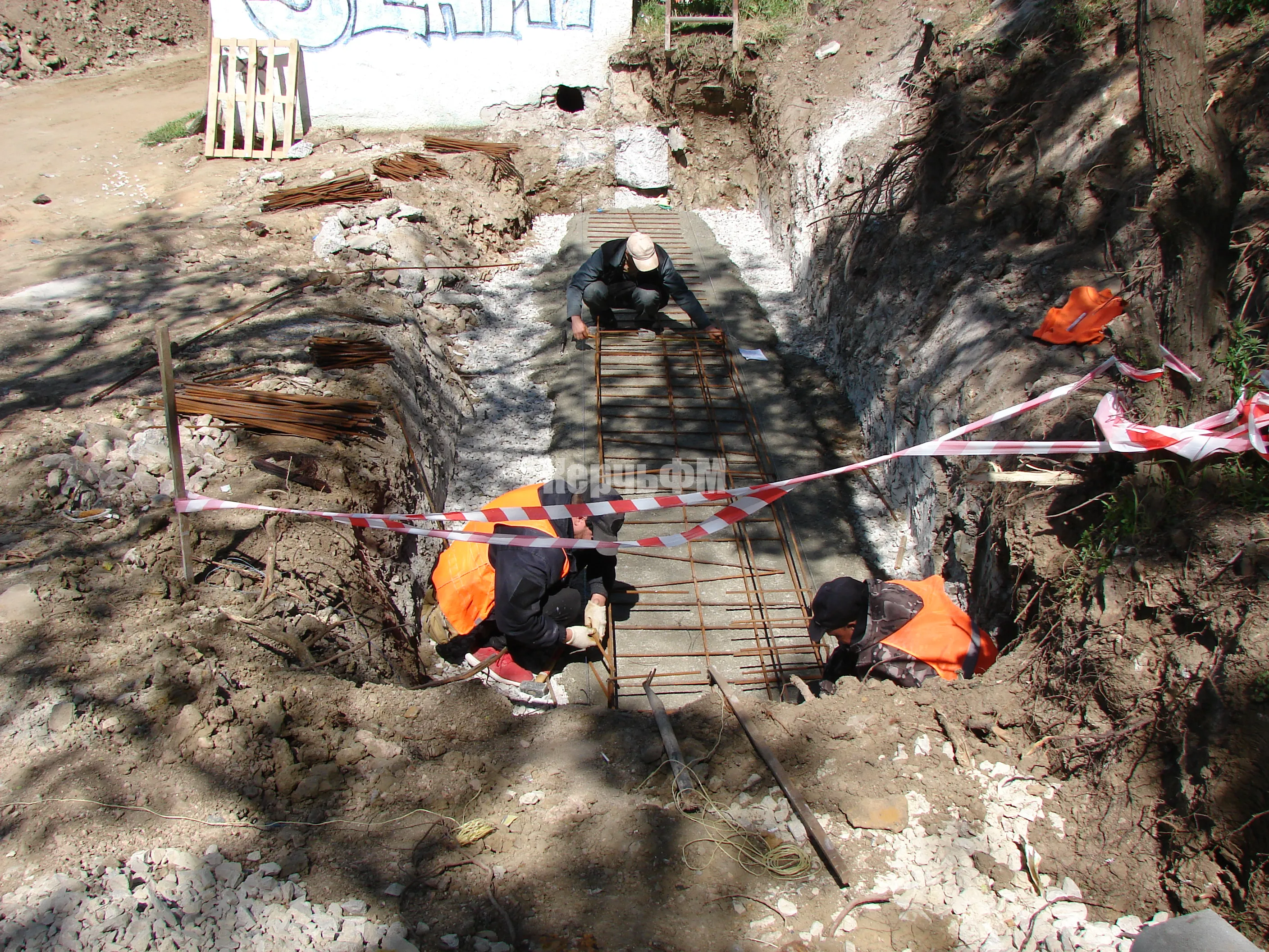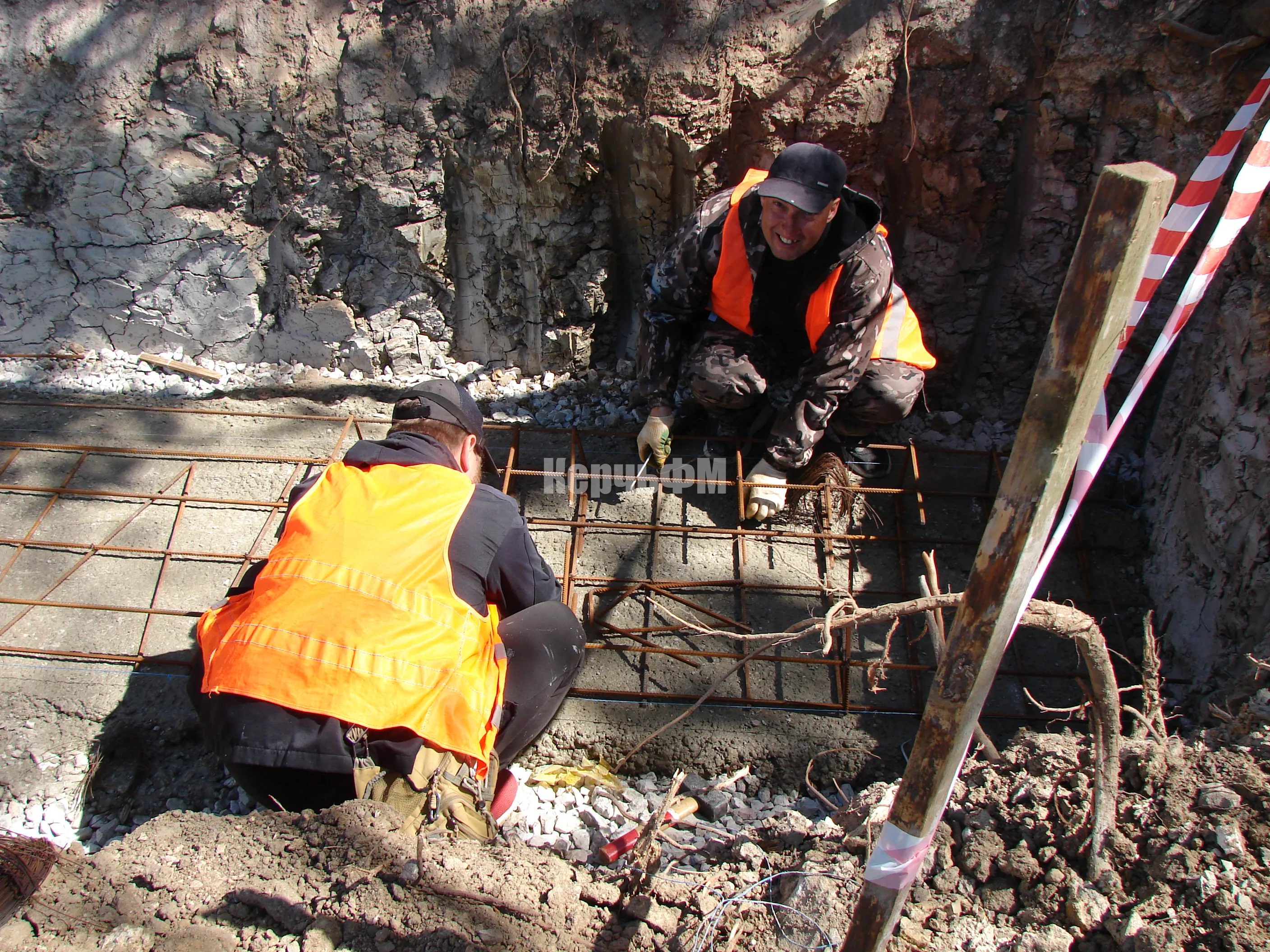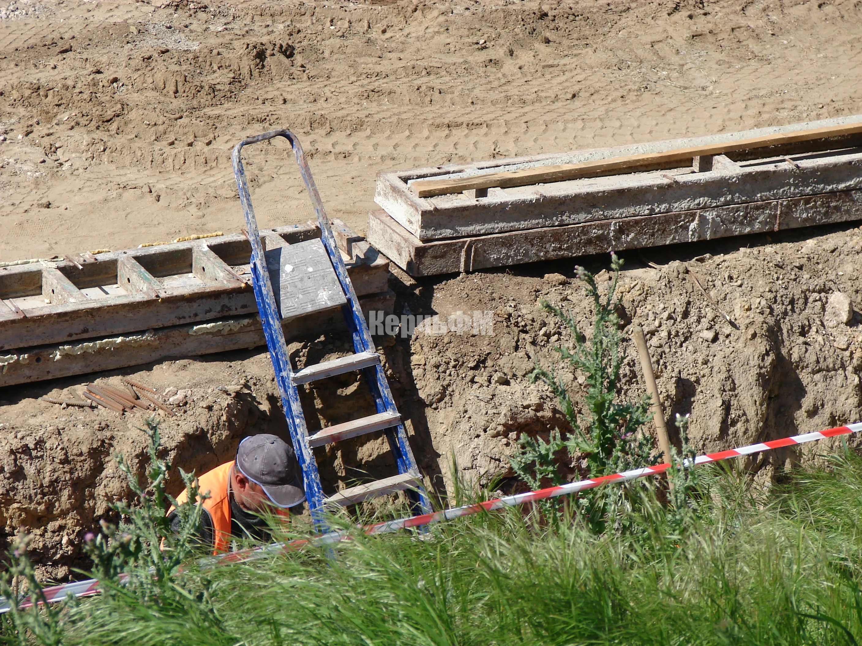 В длинной и глубокой траншее ведутся сварочные работы на металлическом каркасе, которым ее укрепят, передает КерчьФМ.