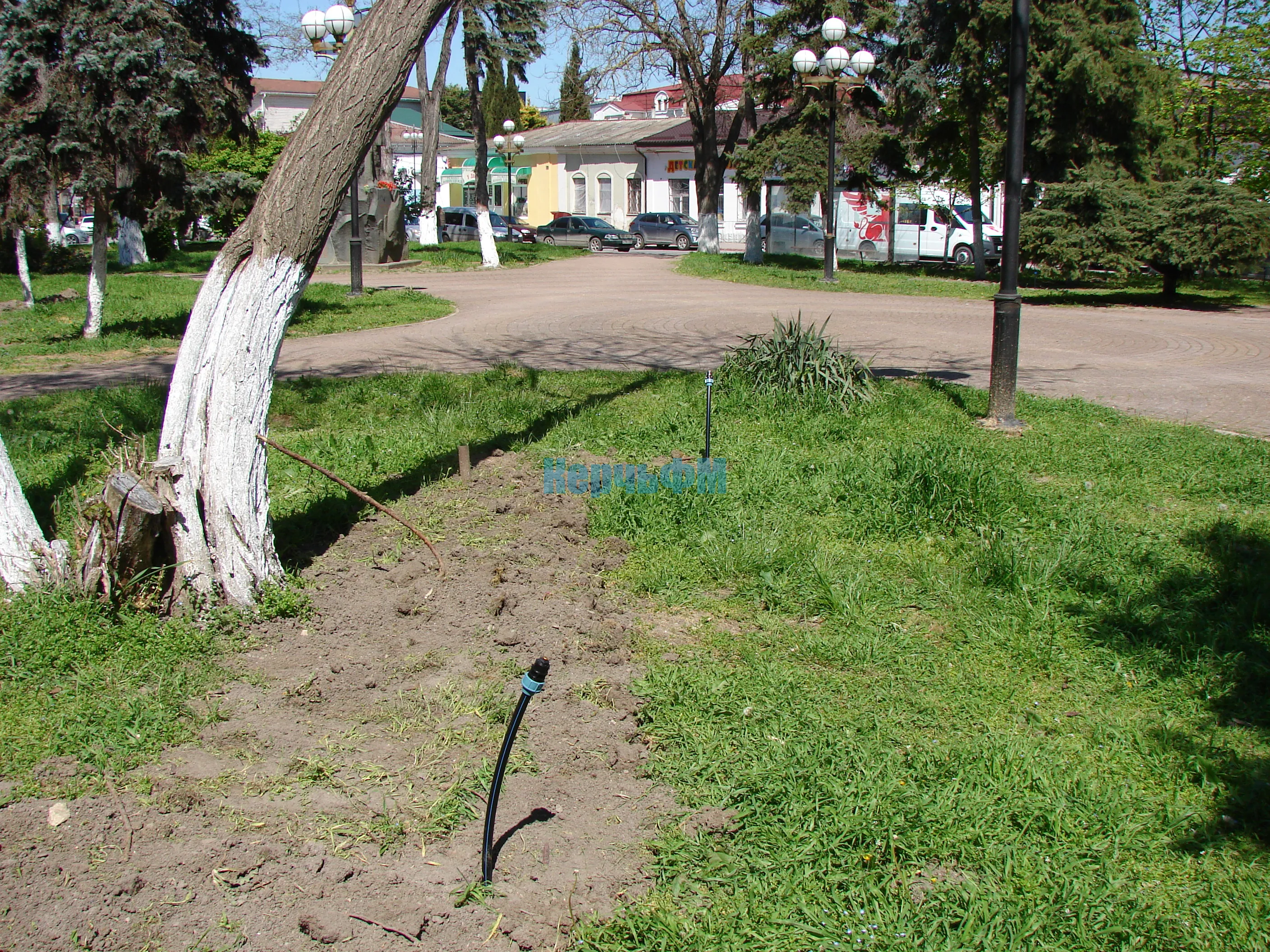 Монтаж автоматической системы полива продолжается.