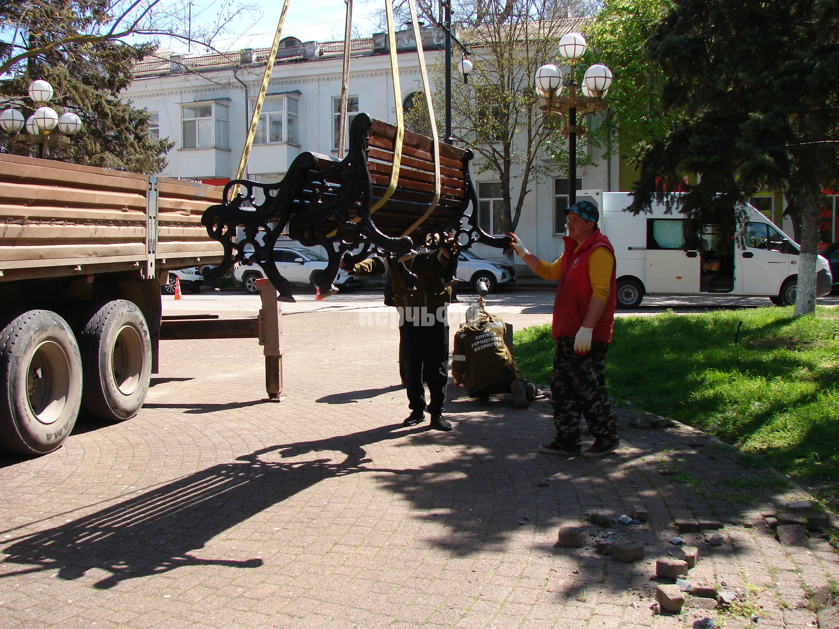 В сквере Дубинина Керчи устанавливают новые лавочки