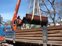 Разгрузку ведут с помощью подъемного крана.