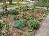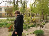 Они разглядывают цветы, растущие на участке, и пытаются угадать, какие плодовые деревья и кустарники здесь высажены.