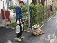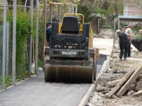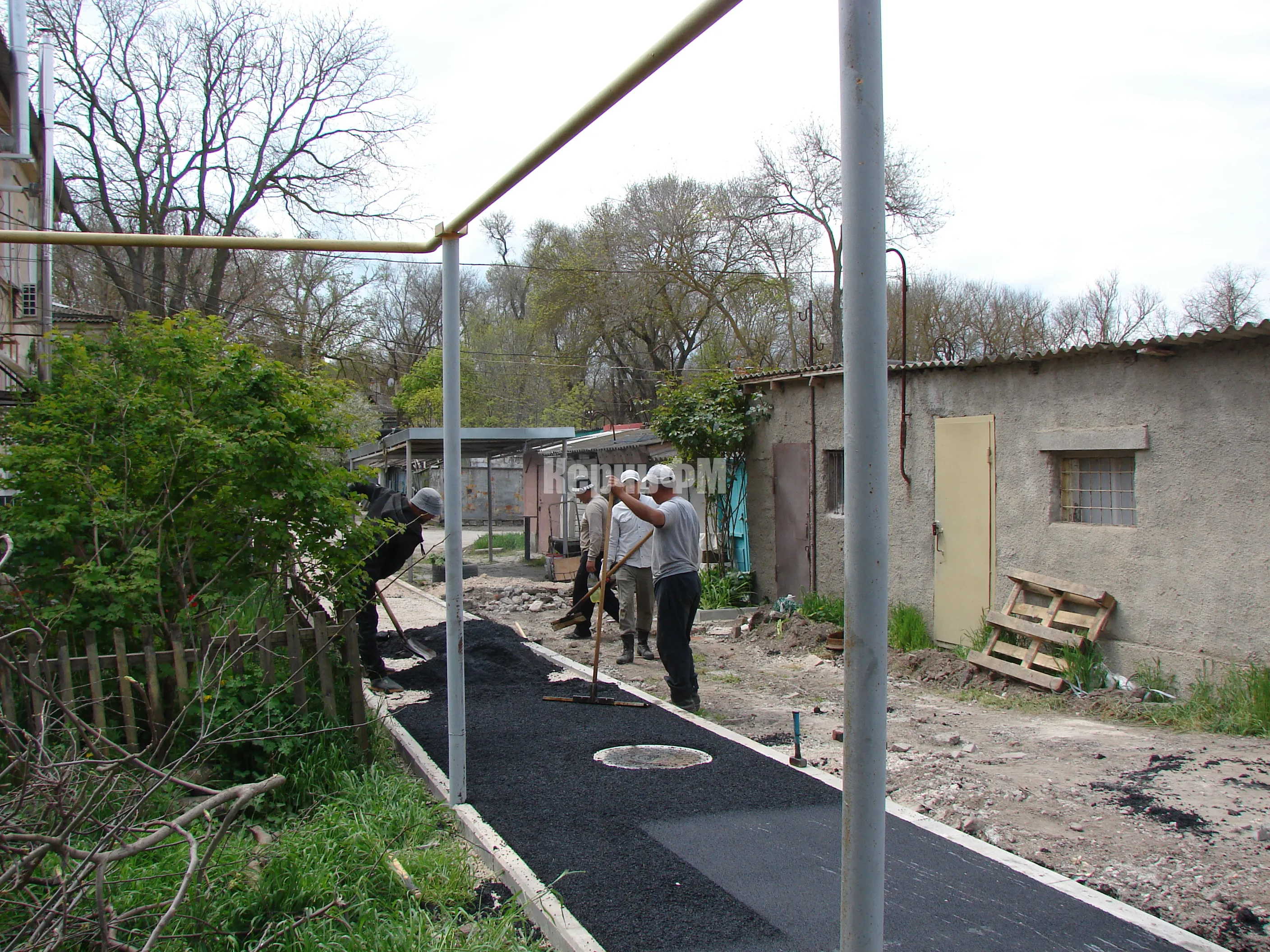 В активной фазе асфальтирование тротуаров и подъездных дорог.