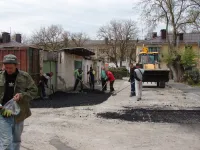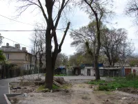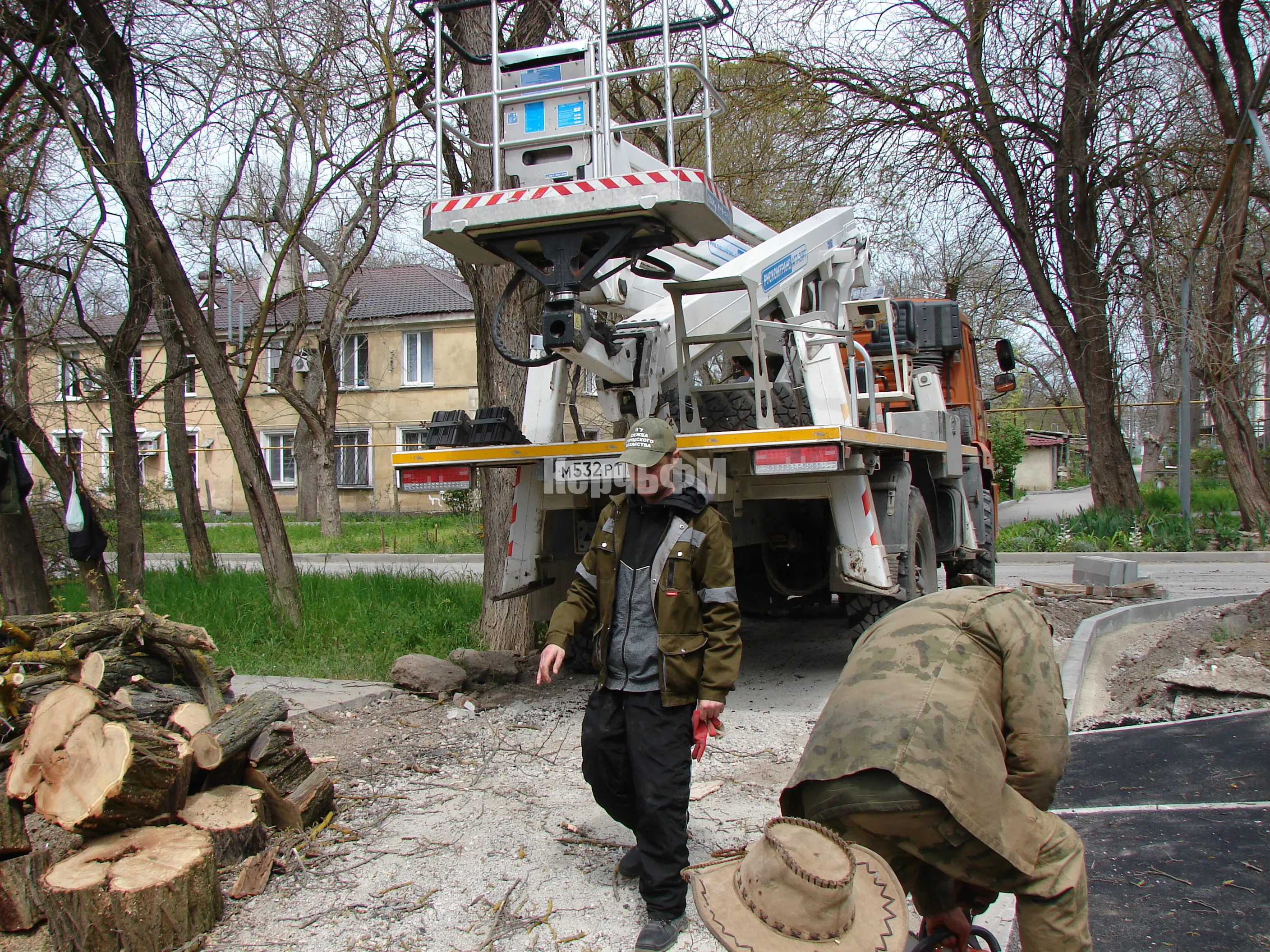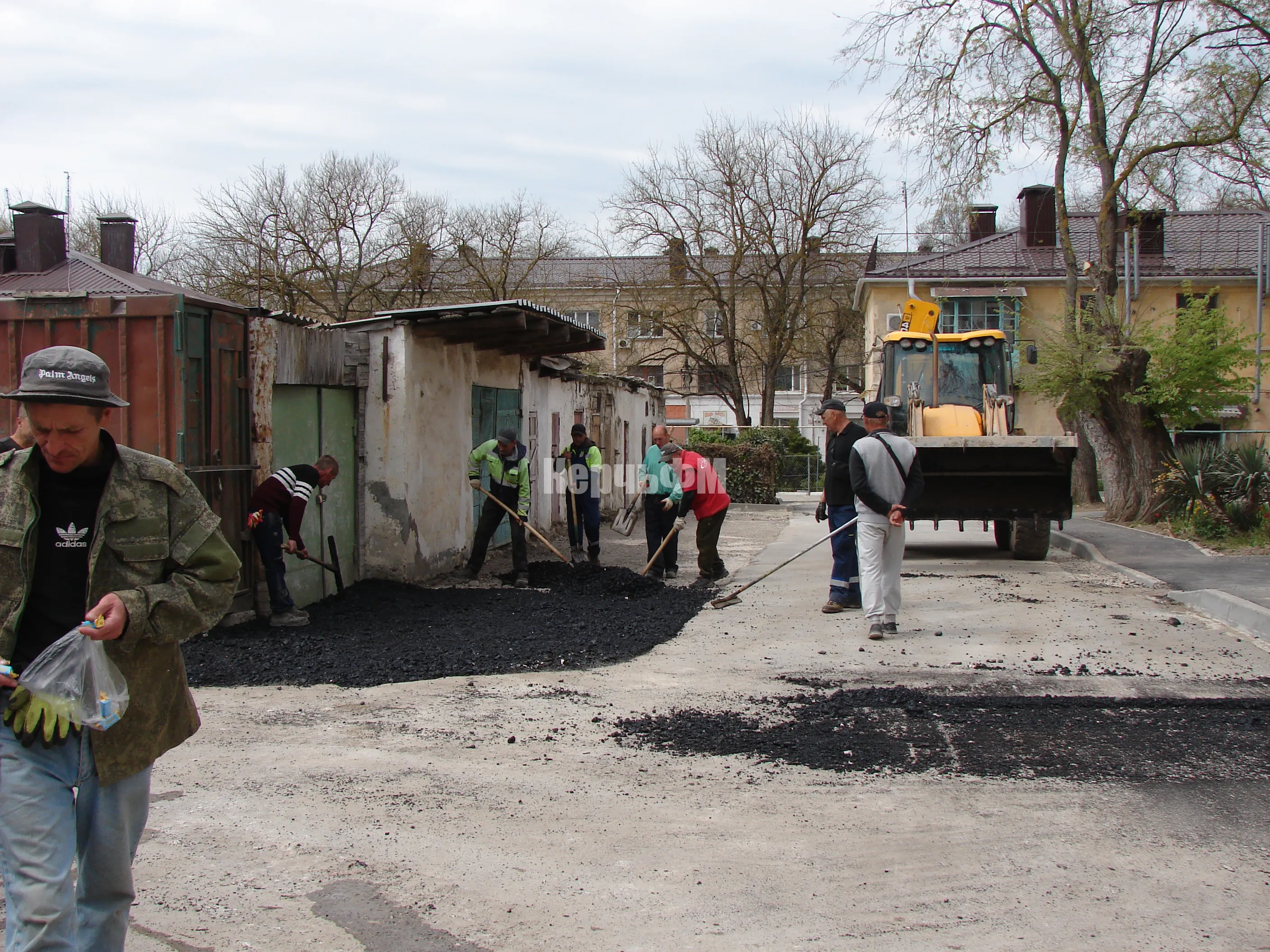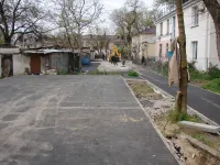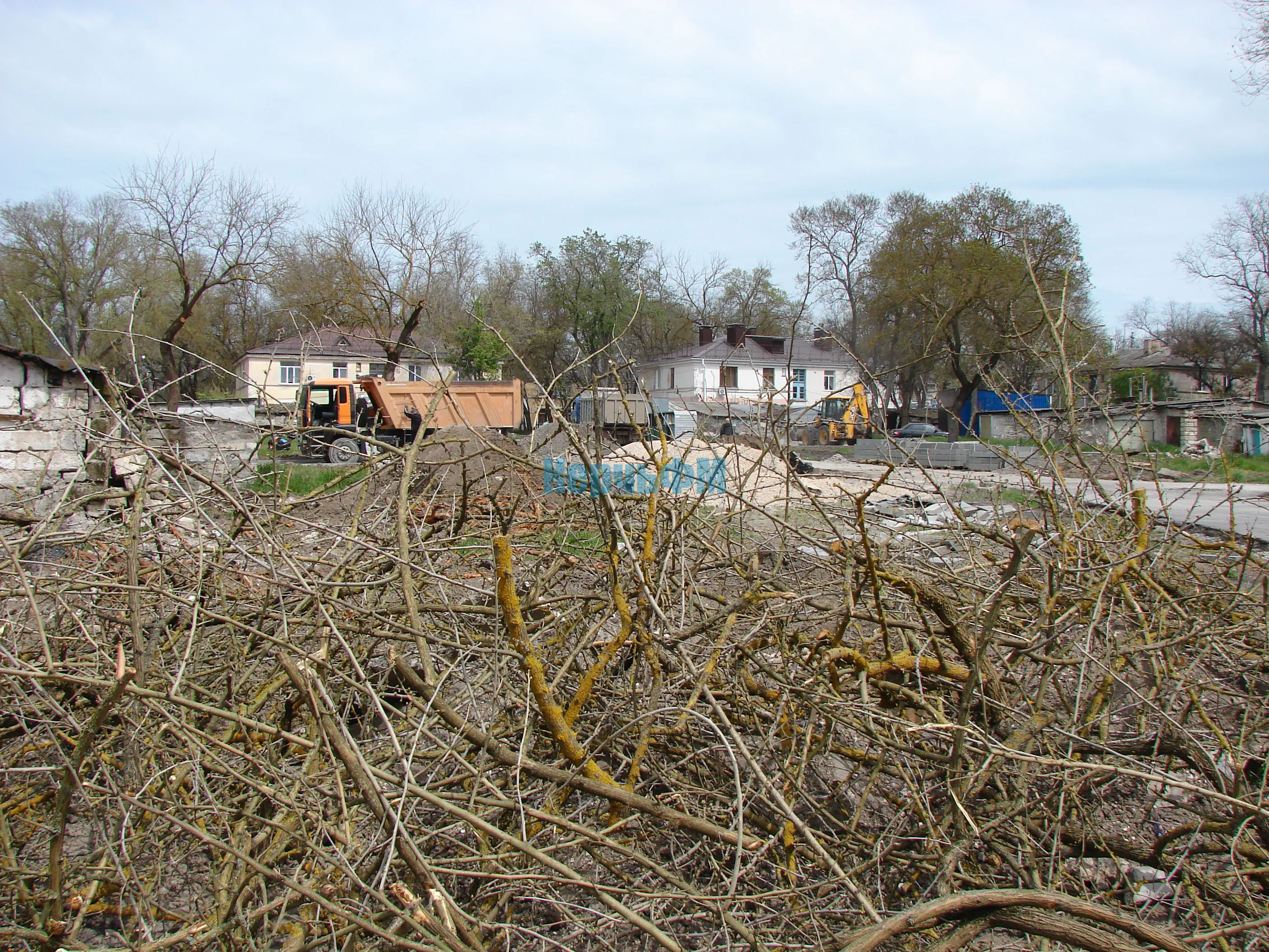 В квартале благоустройства по Спартака, 4,6,8,10 в Керчи пилят деревья и укладывают асфальт