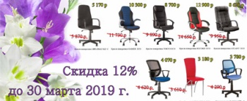 Акция! Кресла для руководителей, офисные кресла и стулья для кухонь со скидкой 12% до 30 марта 2019 года!